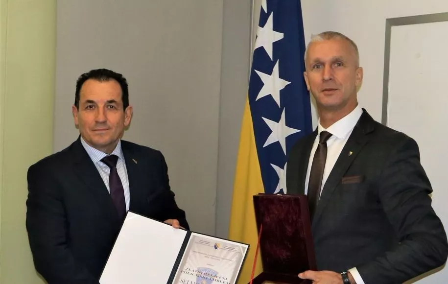 Direktor Vilić se zahvalio ministru Cikotiću na podršci koju pruža Direkciji, kao jednoj od policijskih agencija u sastavu Ministarstva sigurnosti BiH, te mu uručio Zlatni reljefni policijski amblem