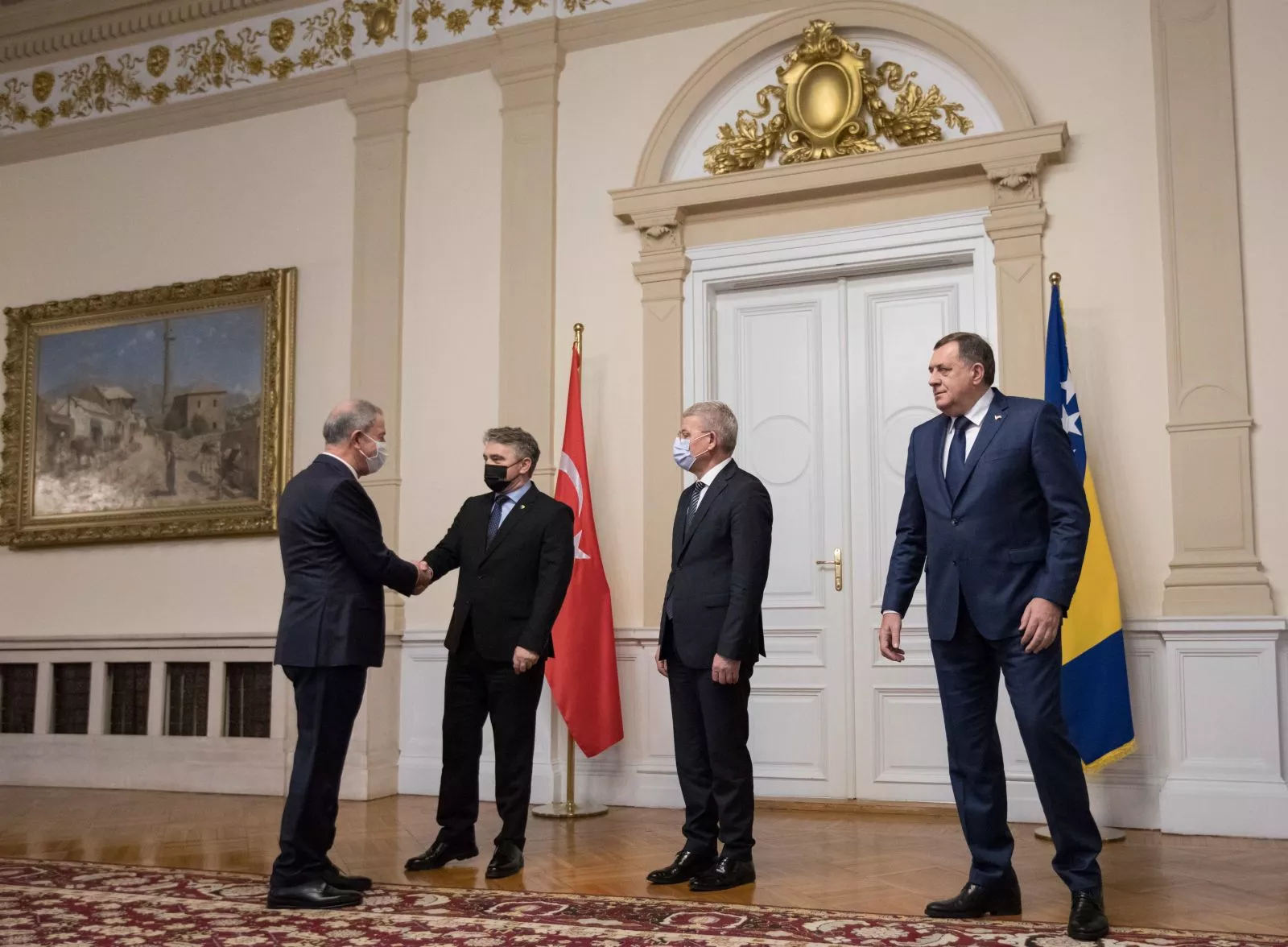(Patria) - Predsjedavajući Predsjedništva BiH Željko Komšić i članovi Predsjedništva BiH Šefik Džaferović i Milorad Dodik primili ministra odbrane Republike Turske Hulusija Akara.