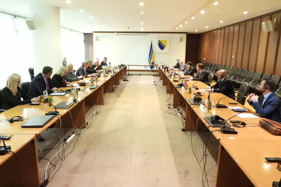 Najviši zvaničnici Parlamentarne skupštine BiH zahvalili su se ambasadorima i predstavnicima Quinte i EU na predanim naporima da se u BiH traže rješenja za prevazilaženje političke krize, te izrazili nadu da će današnji sastanak doprinijeti bržem postizanju kompromisa oko svih otvorenih političkih pitanja i stabilizaciji ukupne političke situacije u BiH i cijelom regionu.