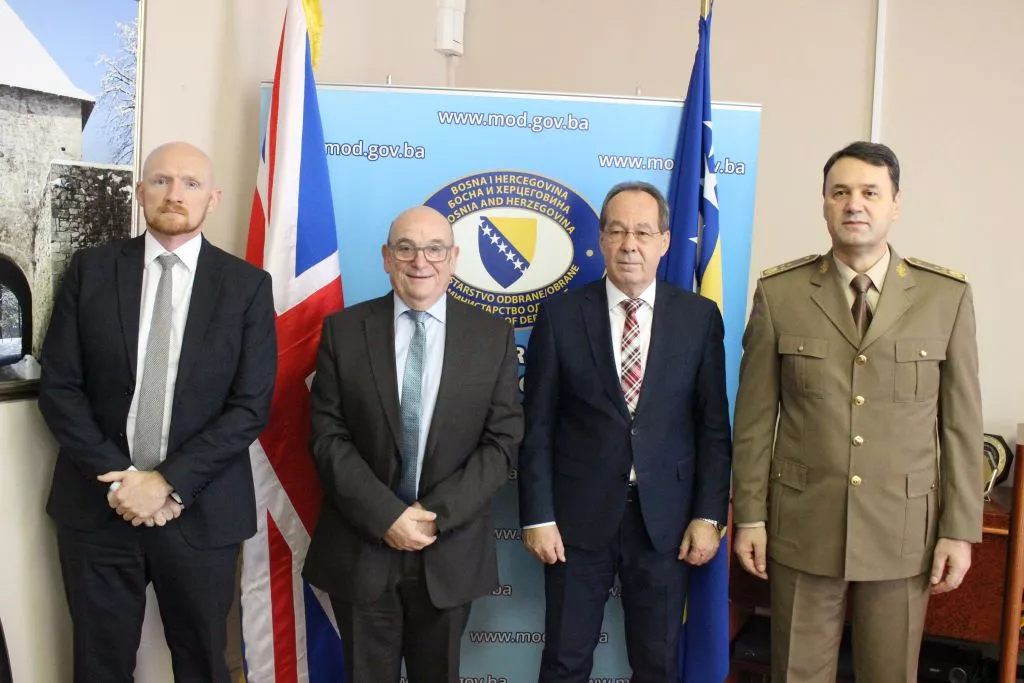 SARAJEVO, (Patria) - Ministar odbrane BiH Sifet Podžić i načelnik Zajedničkog štaba OS BiH generalpukovnik Senad Mašović razgovarali su 15. decembra 2021. godine sa specijalnim izaslanikom britanskog premijera za Zapadni Balkan Sir Stuartom Paechom. Sastanku su prisustvovali i britanski ambasador u BiH Nj.E. Matthew Field i vojni ataše u BiH pukovnik Scott Tait.