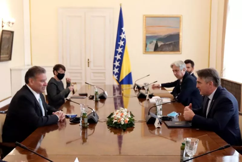 SARAJEVO, (Patria) - Članovi Predsjedništva BiH u srijedu će primit direktora/zamjenika izvršnog direktora za Zapadnu Evropu, Zapadni Balkan, Tursku i Veliku Britaniju pri Evropskoj službi za vanjske poslove (EEAS) Marka Makoveca i zamjenika pomoćnika državnog sekretara SAD-a i specijalnog izaslanika za Zapadni Balkan Gabriela Escobara.