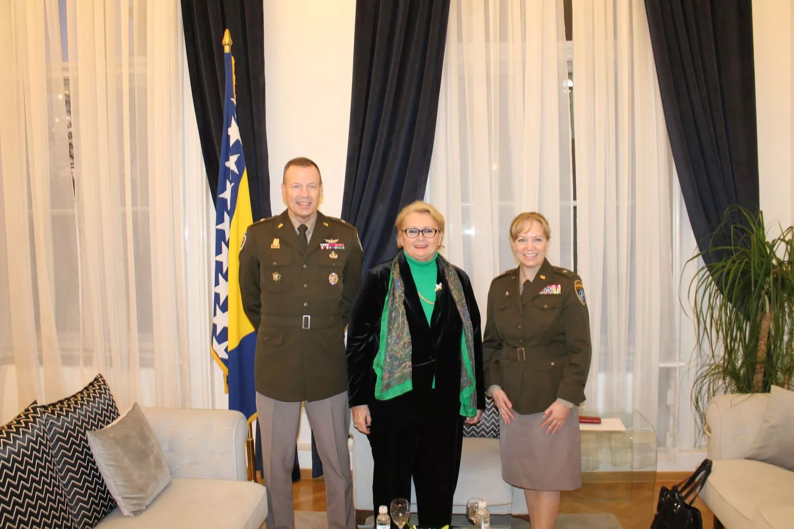 Ministrica Turković se zahvalila generalu Folkestadu na pomoći i suradnji u povodu završetka njegovog jednogodišnjeg mandata na čelu NATO stožera u Sarajevu, dok je novoimenovanoj zapovjednici brigadnoj generalici Pameli L. McGaha poželjela uspješnu misiju.