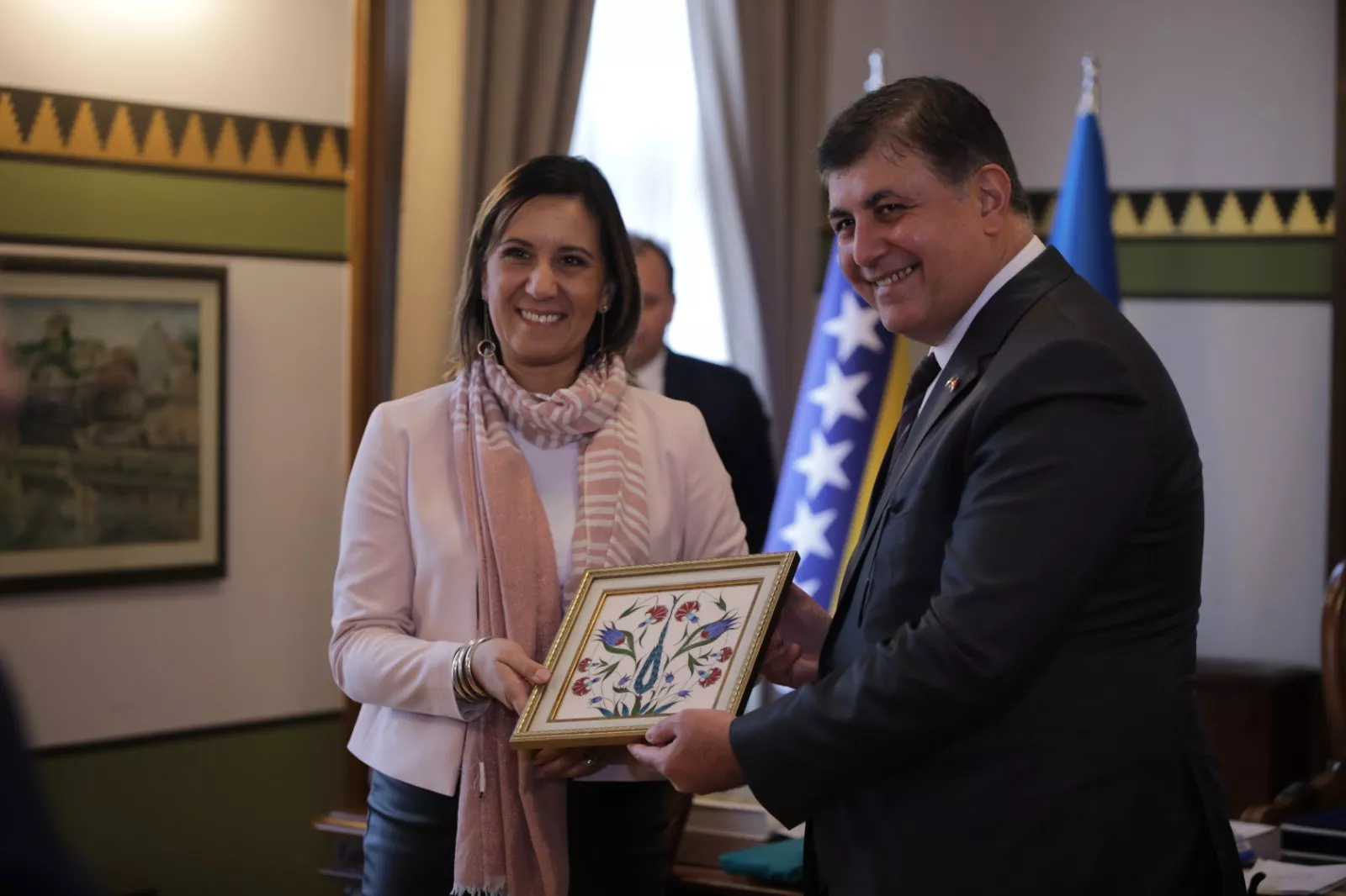 Cemil Tugay, načelnik Općine Karşıyaka, Mehmet Atilla Bysak zamjenik predsjednika Općinskog vijeća Karşıyaka i član Gradskog vijeća Grada Izmira i Hasan Šehović, predsjednik Svjetskog saveza dijaspore Bosne i Hercegovine bili su danas gosti Grada Sarajeva u Vijećnici. Posjeta je uslijedila u okviru bilateralne saradnje Grada Sarajeva i Grada Izmira, a nakon posjete delegacije Grada Sarajeva Gradu Izmiru koju je činila zamjenica predsjedavajućeg Gradskog vijeća Mirela Džehverović i gradski vijećnici Danijela Šahat i Alem Logo.