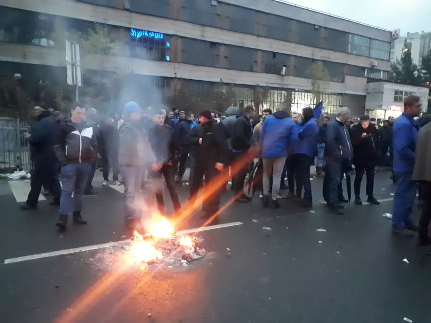 SARAJEVO, (Patria) - Okupljeni rudari ispred zgrade Vlade FBiH u poslijepodnevnim satima zapalili su vatru na cesti kako bi se ugrijali.
