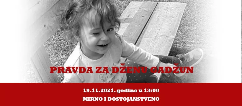 (Patria) - Za danas 19.11.2021. godine u 13:00 organizovano je mirno okupljanje ispred Ministarstva zdravstva Kantona Sarajevo odnosno Vlade KS0 povodom smrti dvoipogodišnje Džene Gadžun iz Kaknja. Ovaj događaj je prijavljen Drugoj policijskoj stanici-Centar, te je za isto izdato odobrenje.