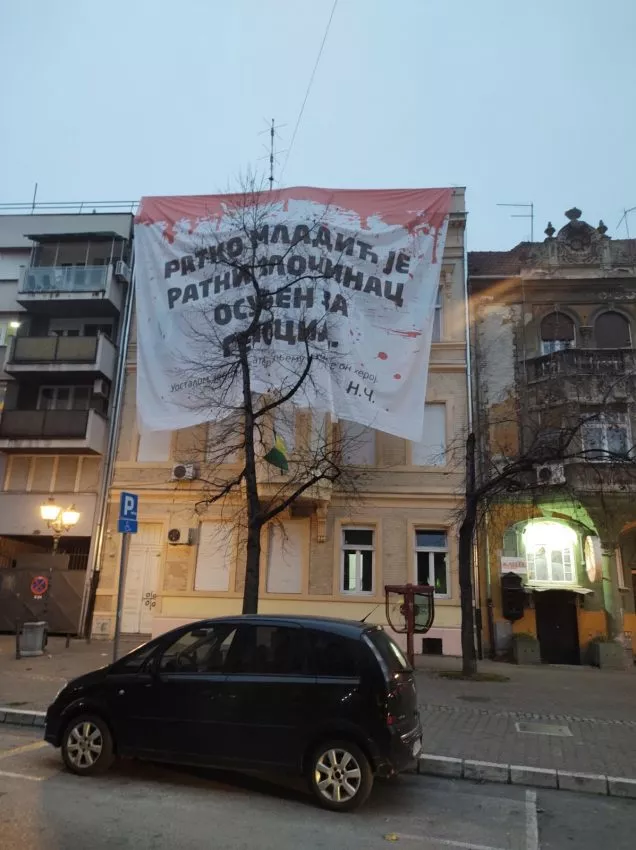 (Patria) - Na zgradi u centru Novog Sada u kojoj je sjedište Lige socijaldemokrata Vojvodine jutros je osvanuo veliki transparent na kojem piše „Ratko Mladić je ratni zločinac osuđen za genocid“.