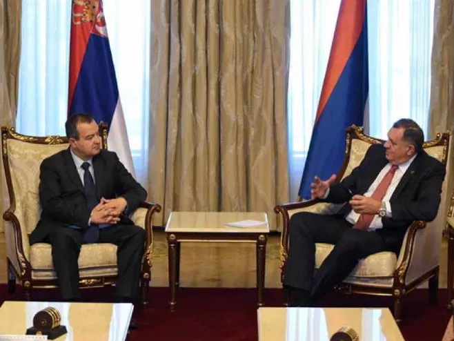 “To znači da imate apsolutnu podršku Srbije na osnovu Dejtonskog sporazuma gdje smatramo da svaka kapitalna odluka koja se tiče odnosa i pozicije naroda i entiteta i pozicije neke centralne vlasti na nivou BiH, ukoliko se mijenja, mora se zasnivati na saglasnosti sva tri naroda i oba entieta. Mi smo svi željni mira i želimo da se sačuva mir, ali i sto tako i ustavne pozicije i ovlašćenja RS. Samim tim Srbija će garantovati sve ono što ne prozilazi samo iz Dejtonskog sporazum,a već sve ono što smo zajedno uradili počevši od sporazuma o specijalnim odnosima“, rekao je Dačić navodeći da je riječ o "živoj vezi Banja Luke i Beograda".