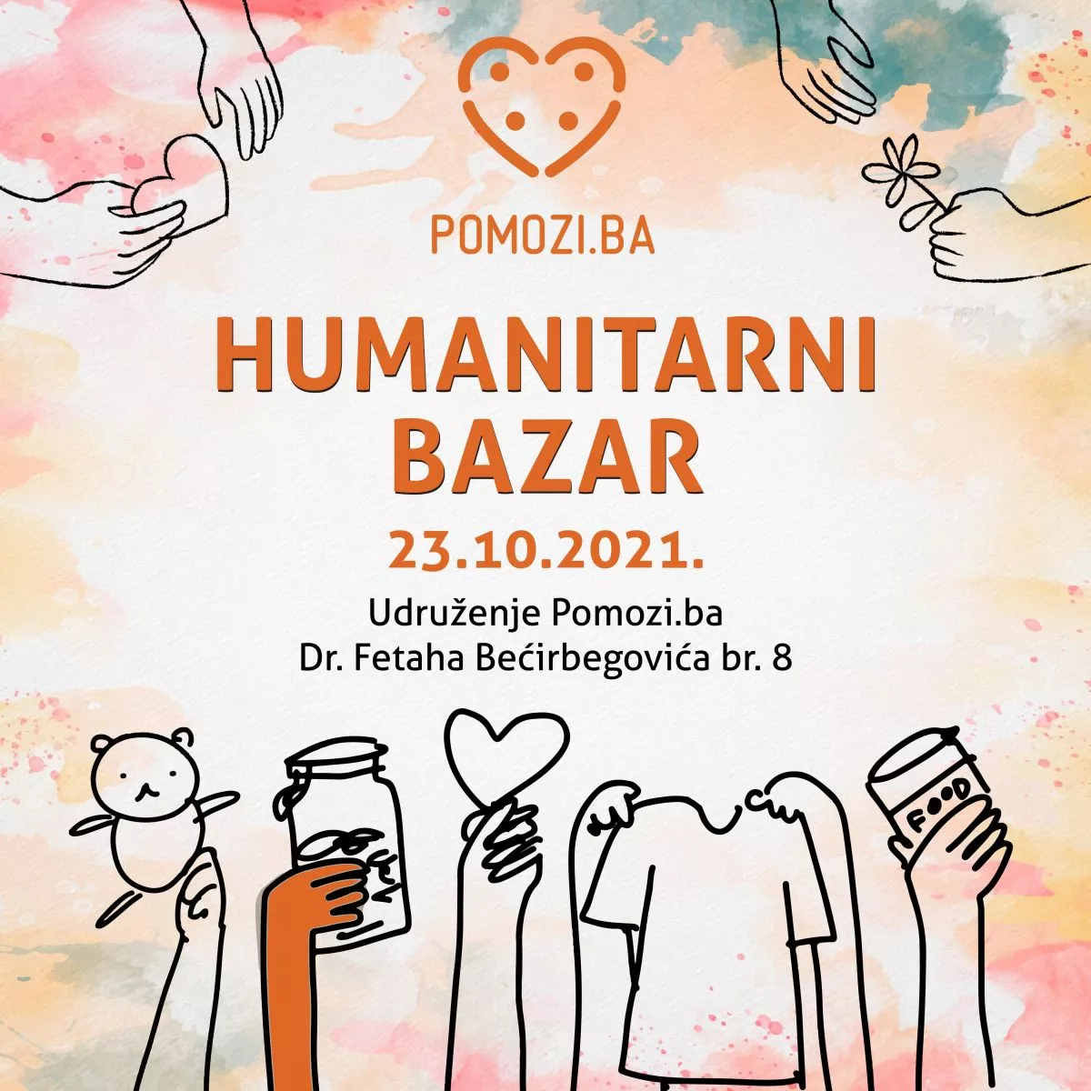 SARAJEVO, (Patria) - Udruženje Pomozi.ba danas organizuje humanitarni “Bazar dobre volje”, na adresi Dr. Fetaha Bećirbegovića br. 8, na Čengić Vili, u periodu od 10:00 do 17:00 sati.