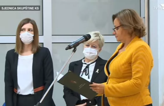 Nova ministrica je položila svečanu zakletvu čime je i zvanično preuzela dužnost ministrice, a zatim su uslijedile čestitke ministara u Vladi KS i zastupnika.