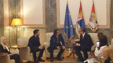 (Patria) - Holivudski glumac Johnny Depp sletio je u Beograd u 14:30 sati, a s aerodroma se pravo uputio u predsjedništvo na prijem kod Aleksandra Vučića, prenosi Nova.rs. Predsjednik Aleksandar Vučić objavio je da je počastvovan dolaskom u Srbiju holivudskog glumca, od koga je dobio na poklon figuru ptice u odjelu pirata, što je asocijacija na njegovu ulogu Jacka Sparrowa u filmu "Pirati s Kariba".