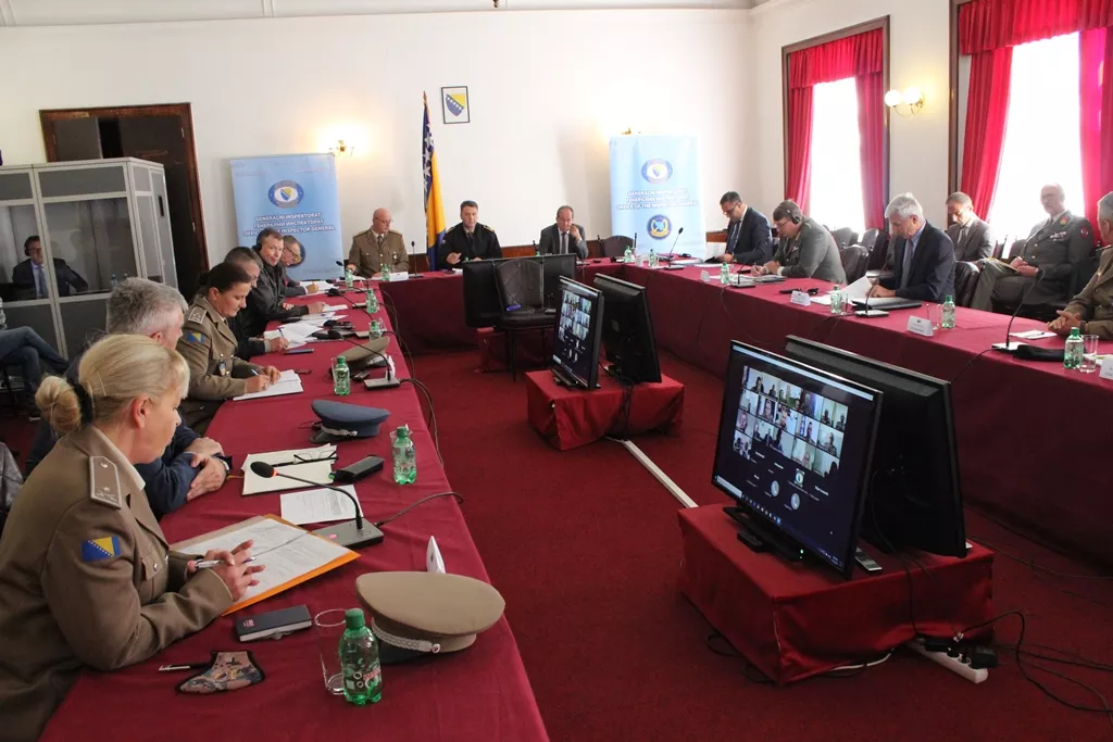 SARAJEVO, (Patria) - U Domu OS BiH u Sarajevu je 15. konferencija Generalnog inspektorata Ministarstva obrane BiH i inspektora u zapovjedništvima i postrojbama Oružanih snaga BiH, koja je uz uvažavanje epidemioloških mjera djelimično organizirana i putem on-line platforme.