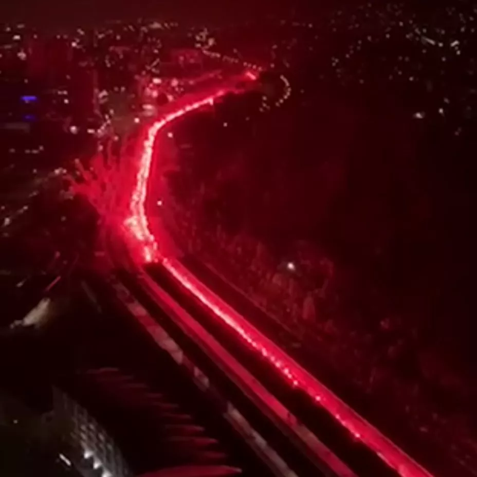 Stotine baklji upaljene su duž pruge, a priređen je i vatromet.