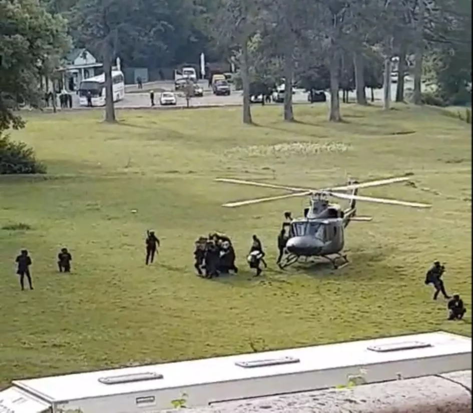 Patrijarh SPC Porfirije i mitropolit crnogorsko primorski Joanikije stigli su u Cetinjski mansatir helikopterom. Njih obezbjeđuju jake policijske snage.
