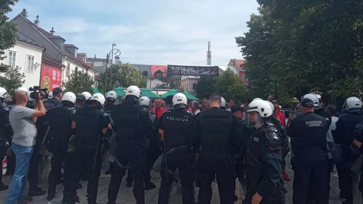 CETINJE, (Patria) - Na Dvorskom trgu u Cetinju u blizini Cetinjskog manastira okupljene su stotina Crnogoraca koji su danas došli iz različitih dijelova Crne Gore na protest protiv ustoličenja mitropolita SPC-a Joanikija u Cetinjskom manastiru 5. septembra. Kako javlja dopisnik Patrije iz Cetinja nije došlo do bilo kakvog ozbiljnijeg incidenta između okupljenih i policije koja obezbjeđuje javni red i mir. Bilo je određenih pokušaja proboja zaštitne ograde, ali nije bilo upotrebe sile od strane policije.