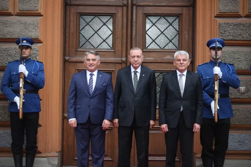SARAJEVO, (Patria) - Turski predsjednik Recep Tayyip Erdogan stigao je u Predsjedništvo BiH gdje je dočekan uz vojne počasti, a dočekao ga je predsjedavajući Predsjedništva BiH Željko Komšić.