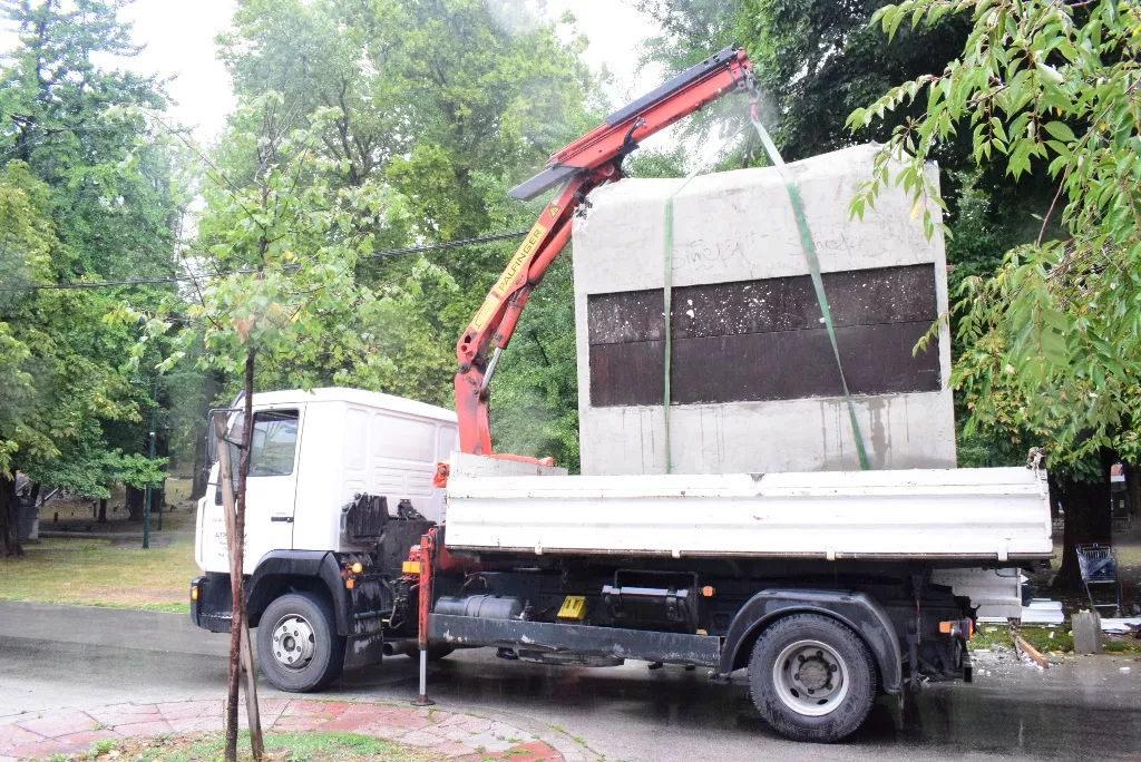 SARAJEVO, (Patria) - Nakon što je općinski inspektor uručio zaključak o dozvoli izvršenja vlasnik je danas uklonio objekat iz ulice Maršala Tita. Riječ je o kamenom objektu koji je bio smješten uz Veliki park i narušavao je izgled parka.