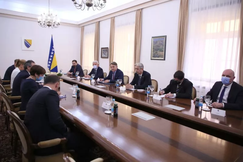 (Patria) - Državni sekretar Ministarstva vanjskih poslova Njemačke Miguel Berger danas se u Predsjedništvu BiH sastao sa predsjedavajućim Predsjedništva BiH Željkom Komšićem i članom iz bošnjačkog naroda Šefikom Džaferovićem, te savjetnicima.