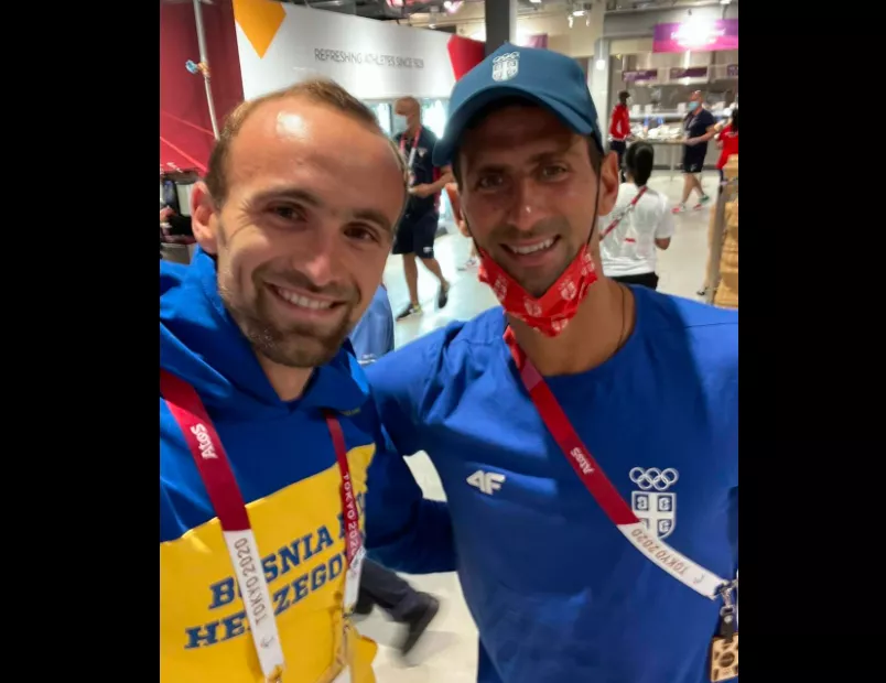 SARAJEVO, (Patria) - Idem ti ja olimpijskim selom i nosim hranu kolegama iz reprezentacije, kad čujem neko govori: Pa gdje si ti?! Kontam, ko će sad biti, al' okrenem se, kad Novak Đoković, glavom i bradom!, napisao je danas na zvaničnoj Facebook stranici naš najbolji atletičar Amel Tuka.
