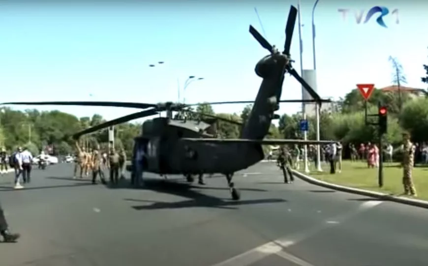 Patria - Helikopter američke vojske prinudno je sletio na ulicu u Bukureštu i tom prilikom oborio je nekoliko bandera i blokirao saobraćaj.