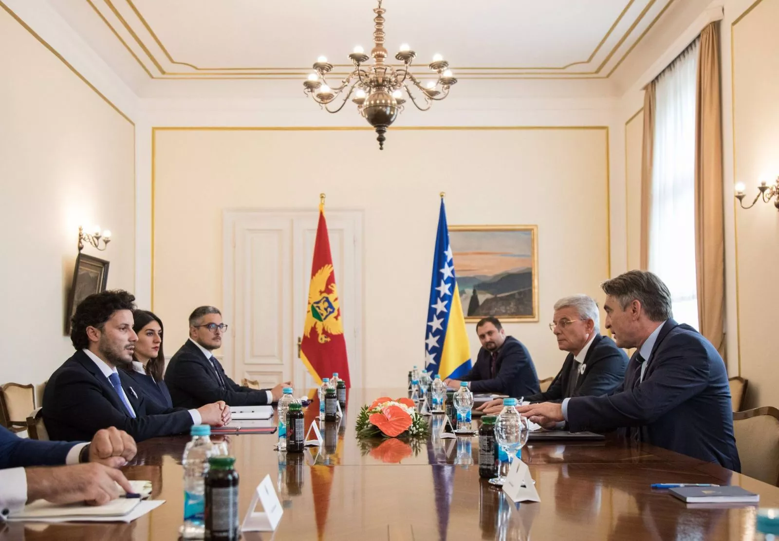 SARAJEVO, (Patria) - Članovi Predsjedništva BiH Željko Komšić i Šefik Džaferović razgovarali sa potpredsjednikom Vlade Crne Gore Dritanom Abazovićem. Tokom susreta izraženo je zadovoljstvo izuzetno dobrim prijateljskim odnosima Bosne i Hercegovine i Crne Gore te naglašeno da su obje države posvećene unapređenju regionalne saradnje i dobrosusjedskih odnosa.