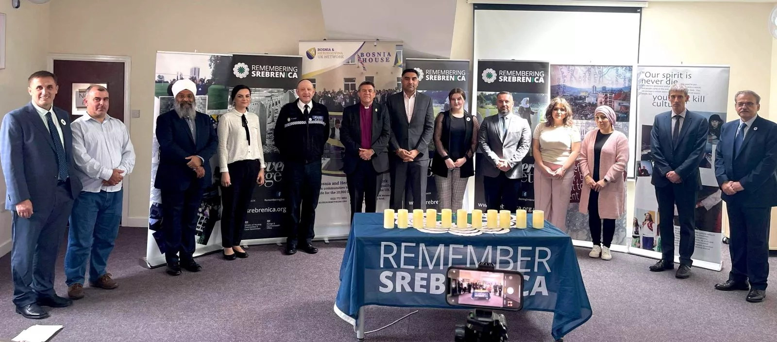 U znak sjećanja na žrtve, zapaljene su svijeće. Tom prilikom, svi prisutni, unatoč razlikama u rasi i religiji su odali počast onima kojih više nema, onima iza kojih su ostali samo uplakani i ožalošćeni. Svijeće su zapalili; Nj.E. Vanja Filipović, Rev John W Butcher BEM, Amrick Singh Ubhi FCMI, FIC, FInstLM, FRSA, FLS, dr. Andrew Smith, Jas Sharma, Selma Bektić, Amina Mekić, Anes Cerić, Mat Shaer, Zaim Pašić i Lejla Solaković. Uslijedio je minut šutnje.
