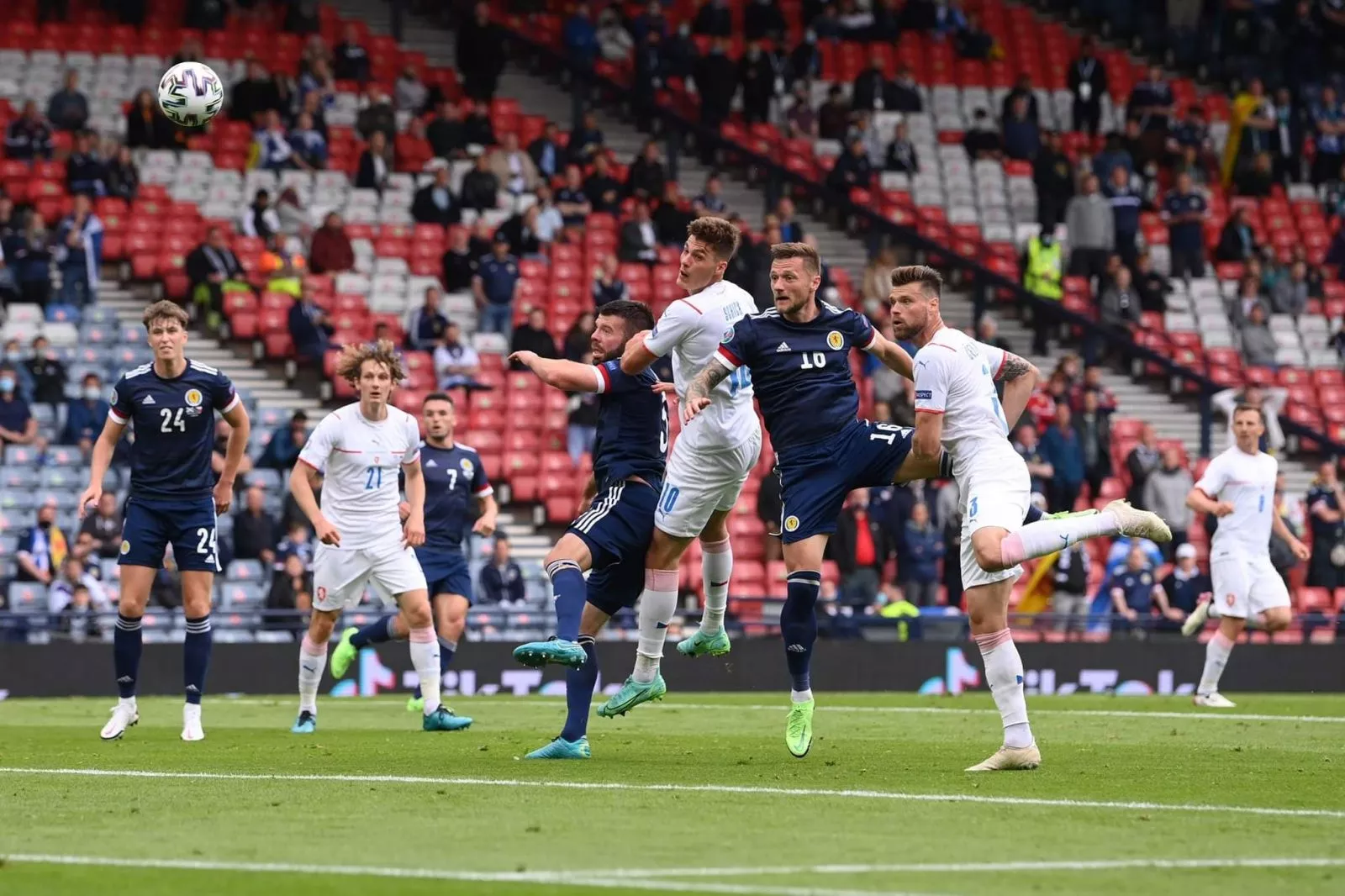 Prvi su zaprijetili Škoti u čevtvrtoj minuti kada je pokušao Adams, ali bez promjene rezultata. Englezi su mogli do prednosti u 11. minuti. Nakon kornera najviši u kaznenom prostoru Škotske bio je Stones, ali pogodio je stativu.