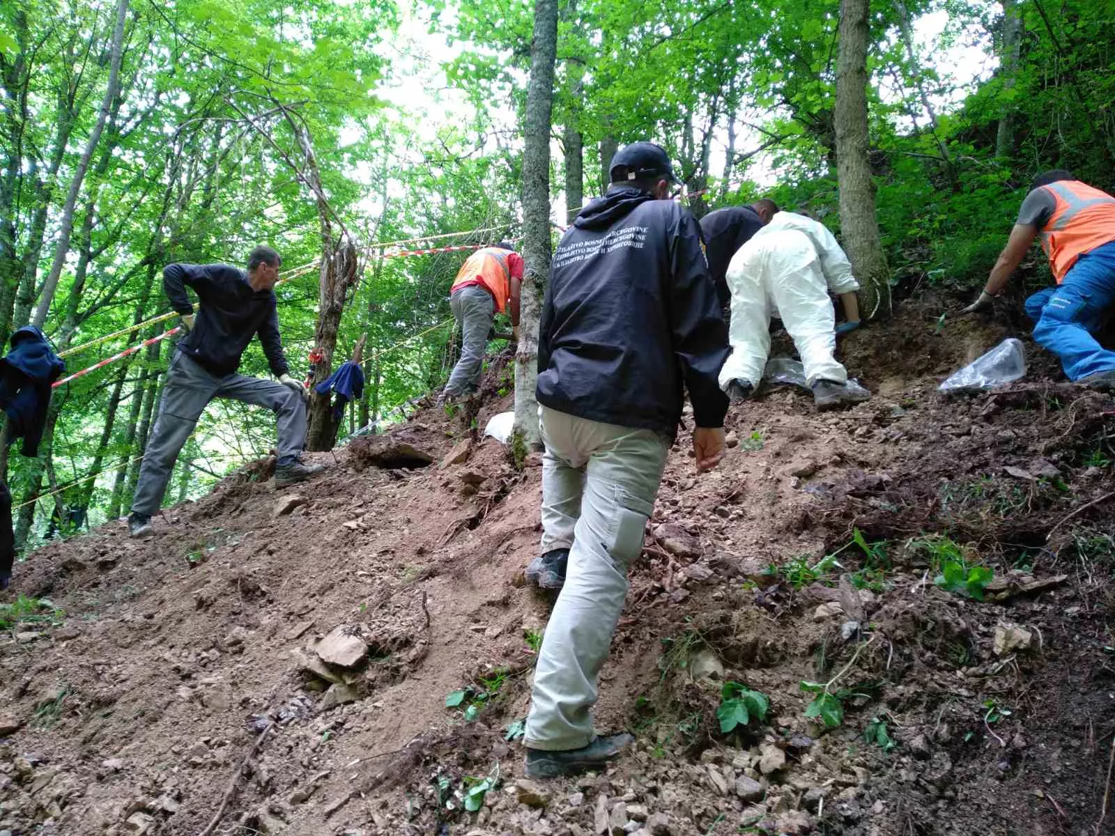 Istražitelj iz Posebnog odjela za ratne zločine, koordinira rad i aktivnosti ovlaštenih službenih osoba, koje sudjeluju u procesu ekshumacije, koja se na navedenoj vrlo nepristupačnoj lokaciji, vrši već 7 dana, u svim vremenskim uvjetima.