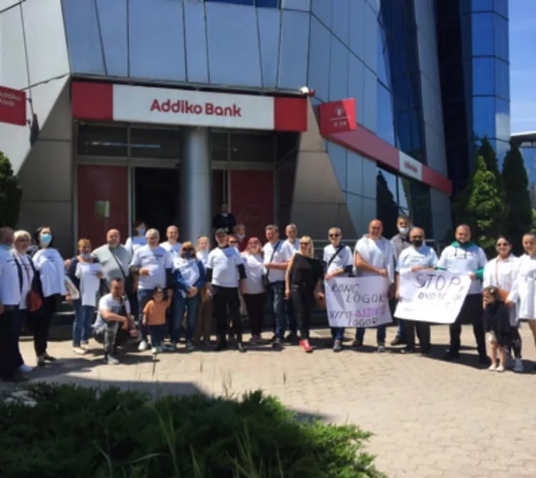 SARAJEVO, (Patria) - Članovi Udruženja korisnika kredita “Švicarac” okupili su se danas ispred poslovnice Addiko banke, nekadašnje Hyppo Alpe Adria, kako bi ponovo izrazili protest zbog poznatog problema klauzule o navodnim kreditima u švicarskim francima, zbog kojih su mnogi zapali u probleme.