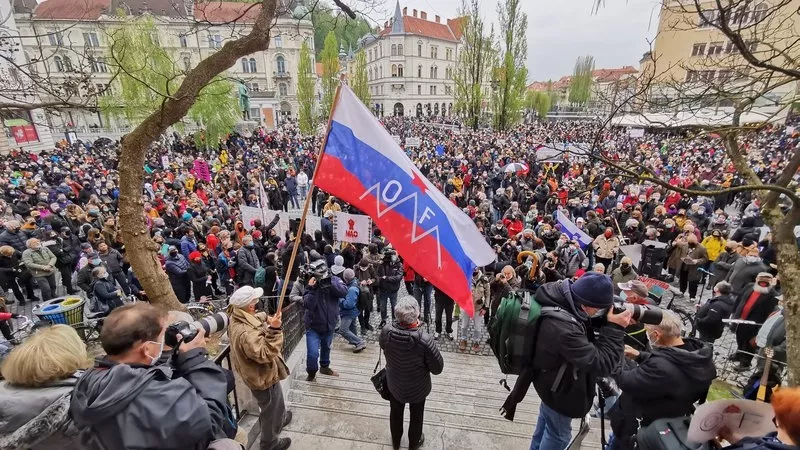 Protestni skup krenuo je u 17 sati na Prešernovom trgu, a organizatori su umjesto tradicionalnog petka odabrali dan ustanka protiv okupatora, piše slovenski Delo.