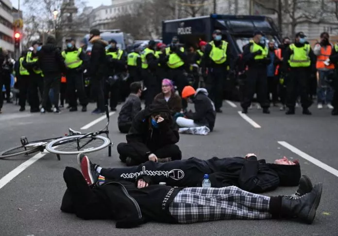 U saopštenju se navodi da je nekoliko desetina hiljada ljudi marširalo Londonom, uzvikujući “sloboda” i držeći transparente “Medicinski aparthejd je pogrešan”, “Ne pasošima za vakcine” i “Ovo je tiranija”. Povrijeđeno je osam policajaca dok su sinoć pokušavali da rastjeraju masu u Hajd parku. Demonstranti su ih gađali raznim predmetima, uključujući flaše ističe se u saopštenju.