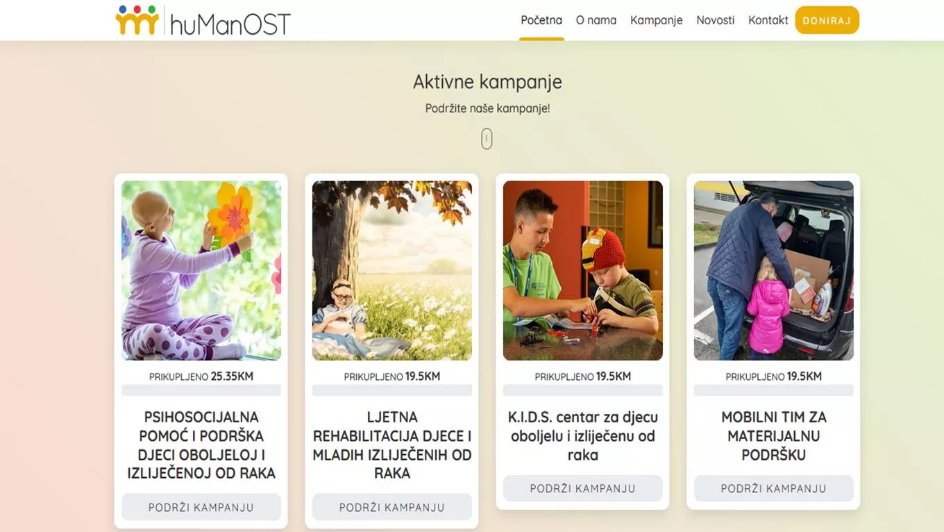 Putem platforme humanost.ba donatori (fizička i pravna lica) mogu brzo, jednostavno i potpuno sigurno kartičnim plaćanjem (Visa, MasterCard, AmericanExpres, Discover, PayPal) podržati projekte i aktivnosti namijenjene djeci oboljeloj i izliječenoj od raka. Proces podrške i doniranja je brz i jednostavan, i nudi donatoru mogućnost da odabere jednu ili više kampanja koju želi podržati novčanom donacijom, i time dati vlastiti dopinos u zajedničkoj borbi protiv dječijeg raka.