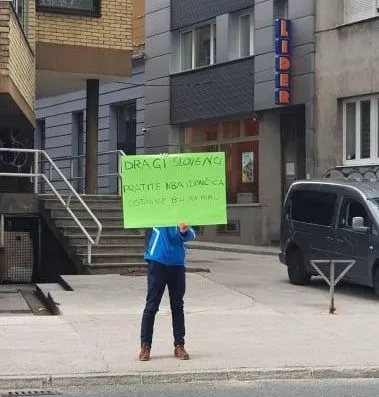Upravo iz svega navedenog jedan Sarajlija je iz protesta prema onome o čemu se govori pred Slovenskom ambasadom u BiH došao sa transparentom. Vrlo domišljato poručuje Slovencima da prate NBA i Dončića (Slovenac u NBA ligi op.a.), te da ostave BiH na miru!