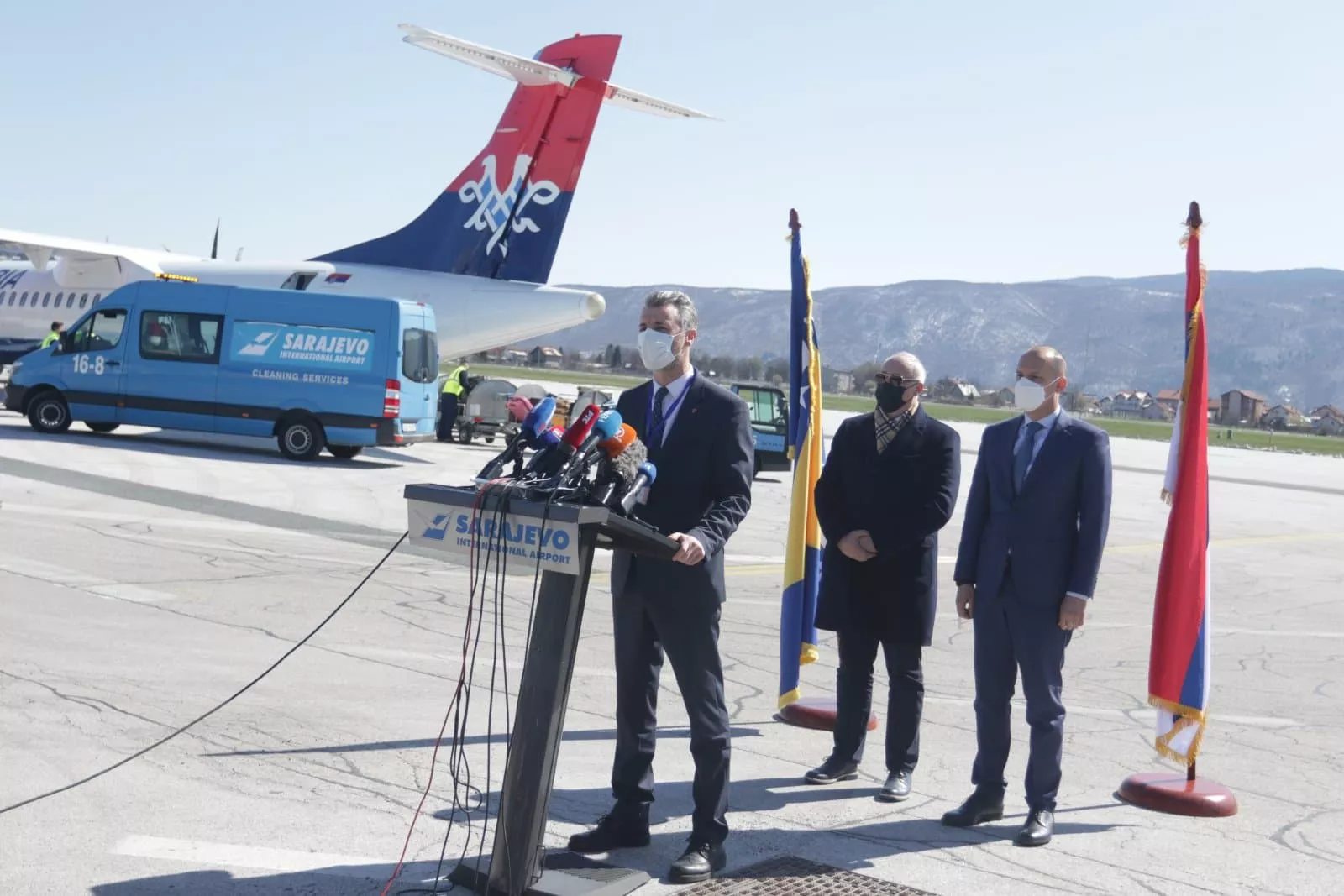 SARAJEVO, (Patria) - Na Međunarodni aerodrom Sarajevu sletio je avion Air Srbije sa 10.000 vakcina AstraZeneca koje Srbija poklanja Kantonu Sarajevo. U drugom kontingentu stići će još 10.000 za revakcinaciju.
