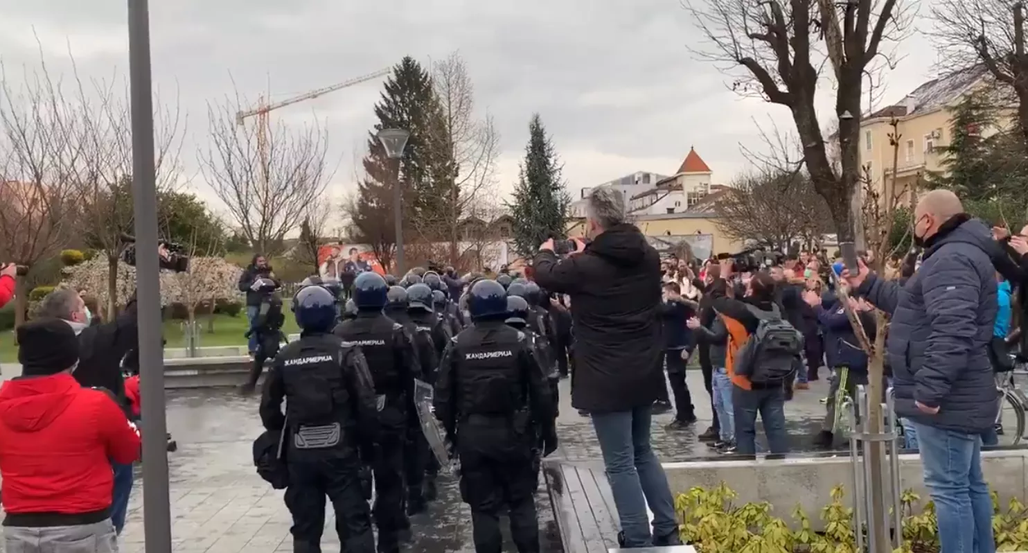 Policajci su u više navrata pokušavali usmenim naredbama uticati na građane da se raziđu zbog nepoštovanja epidemioloških mjera.