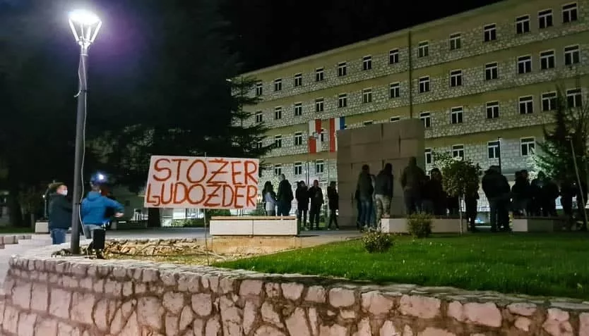 Nakon što je Krizni štab Zaspadnohercegovačkog kantona uveo petnaestodnevnu zabranu kretanja od 20 i 30 do 05 sati pedesetak građana u Grudama sinoć je izašlo na proteste.