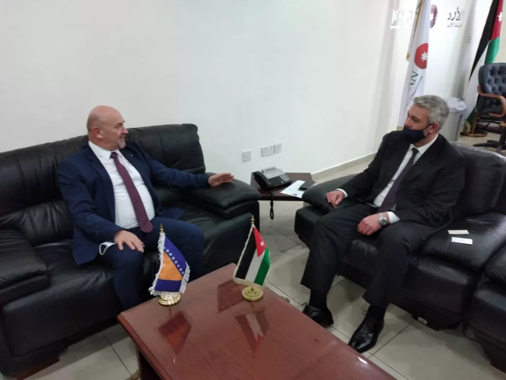 SARAJEVO, (Patria) - Ambasador Bosne i Hercegovine u Hašemitskoj Kraljevini Jordan Mato Zeko sastao se 15.februara 2021. godine, u prostorijama JIC-a, sa generalnim sekretarom Jordanske investicione komisije (JIC) Fareedonom Hartoqom. Tom prilikom, razgovaralo se o iskustvima JIC-a u promociji i privlačenju stranih investicija u vrijeme epidemije koronavirusa, te o saradnji JIC-a i FIPA-e.