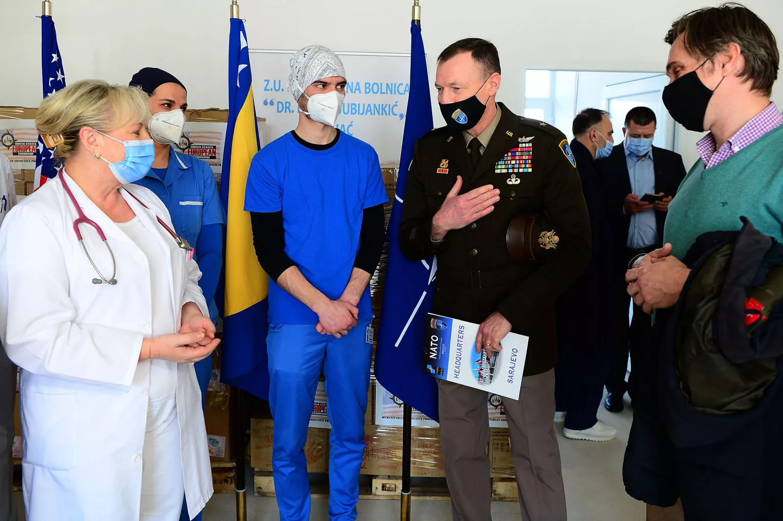 „Današnja donacija je jedna u nizu donacija humanitarne pomoći u borbi protiv COVID-19 koju su Sjedinjene Američke Države, u svojstvu NATO saveznika, donirale u cijeloj BiH od početka ove pandemije. Ove donacije pokazuju da će Savez uvijek stajati uz svog partnera, Bosnu i Hercegovinu u najtežim vremenima".