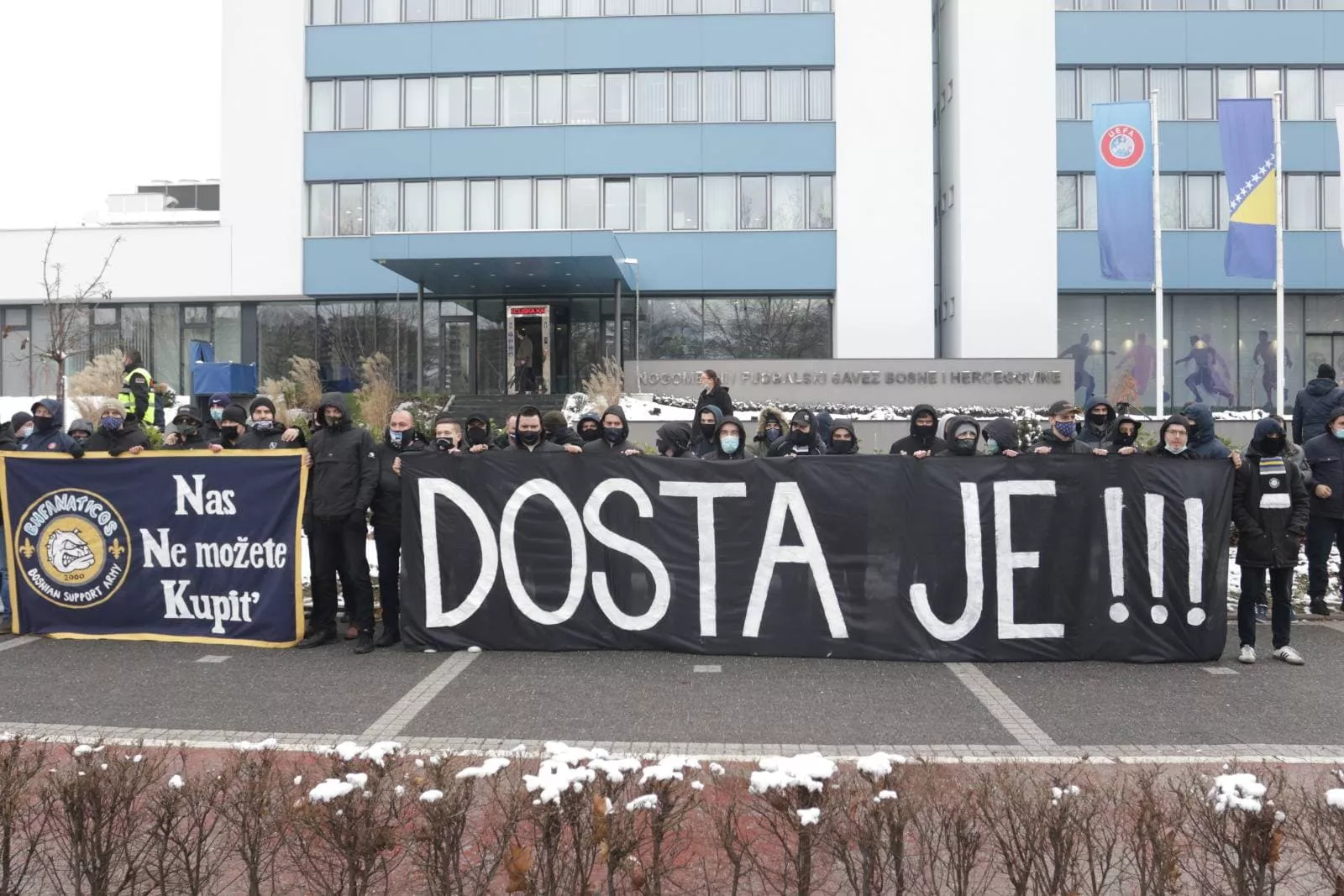 Članovi navijačke skupine BH Fanaticosi okupili su se pred zgradom Saveza kako bi istakli nezadovoljstvo radom NSBiH, te zbog izbora Ivayla Peteva za selektora koji će danas biti zvanično predstavljen javnosti.