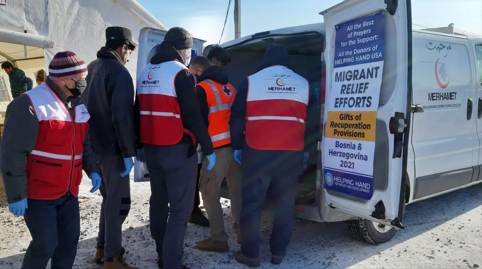 - “Merhamet” je pripremom obroka, podjelom odjeće, obuće, ćebadi i higijenskih sredstava, pomagao migrantima u Unsko-sanskom kantonu, u Tuzli, Sarajevu i Mostaru. Prije toga, dok