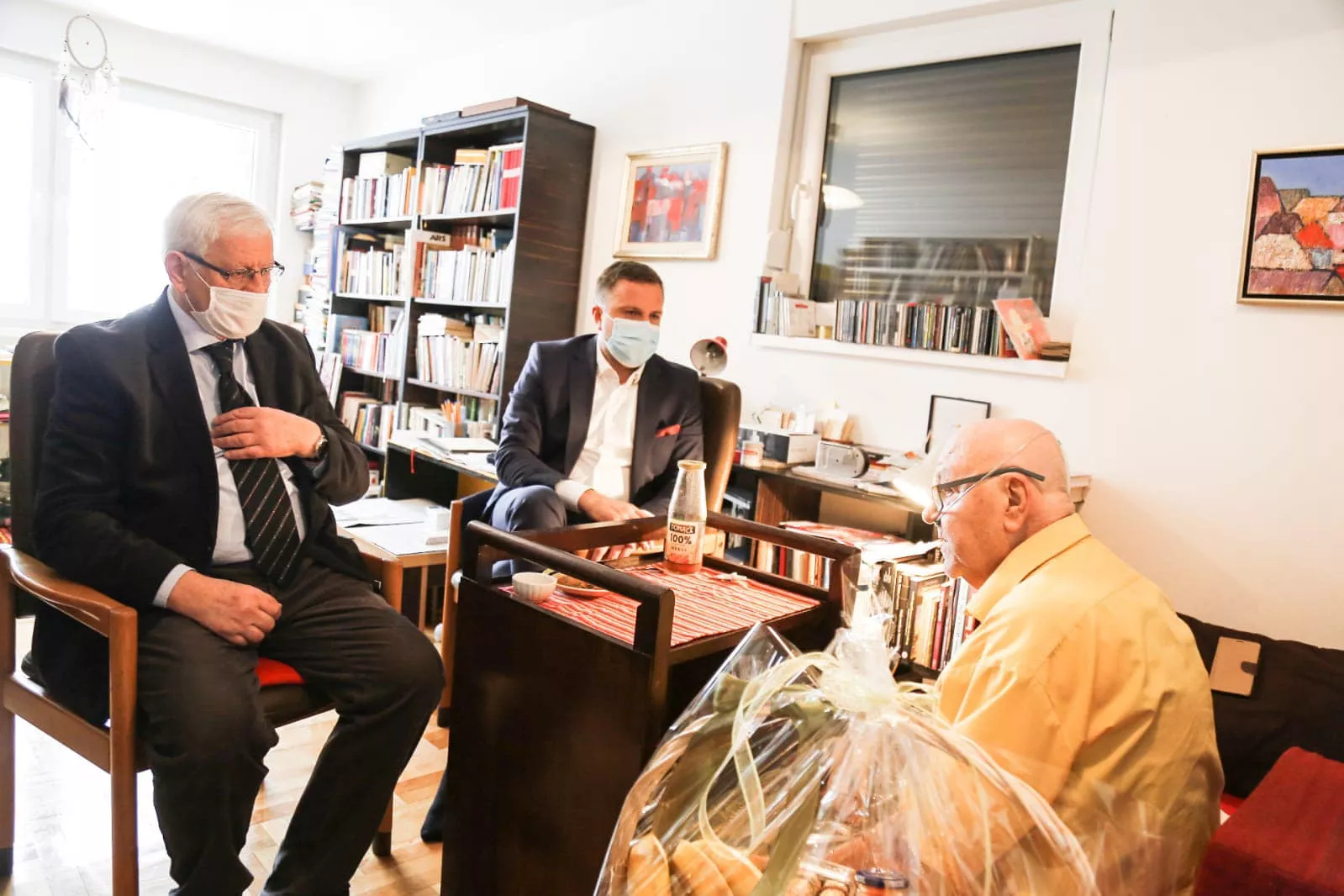 SARAJEVO, (Patria) - Gradonačelnik Sarajeva Abdulah Skaka danas je u društvu prof.dr. Mirka Pejanovića posjetio akademika Abdulaha Sidrana koji je pobijedio koronavirus.
