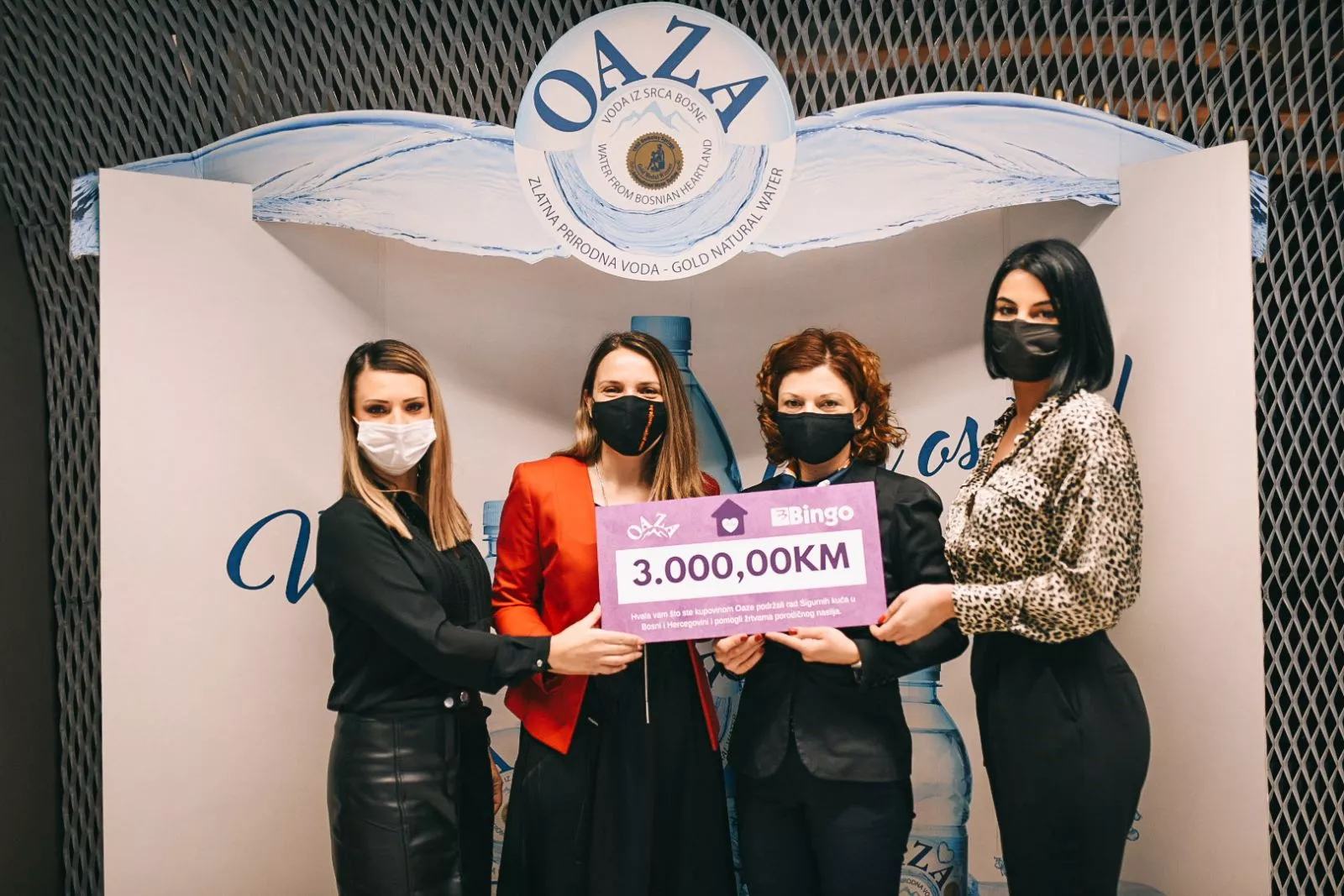 U protekla dva mjeseca kompanije Oaza i Bingo su zajedno pokrenuli aktivnost u kojoj su kupci mogli doprinijeti donaciji Sigurnim kućama u BiH. Kupovinom vode Oaza 0,5 l izdvaja se 10% za rad Sigurnih kuća i žrtava nasilja u porodici u Bosni i Hercegovini.