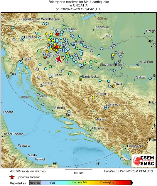 (Patria) - Europski mediteranski seizmološki centar (EMSC) procijenio je u utorak da je zemljotrese u Hrvatskoj magnitude 6.2 prema Richteru osjetilo sedam miliona ljudi.