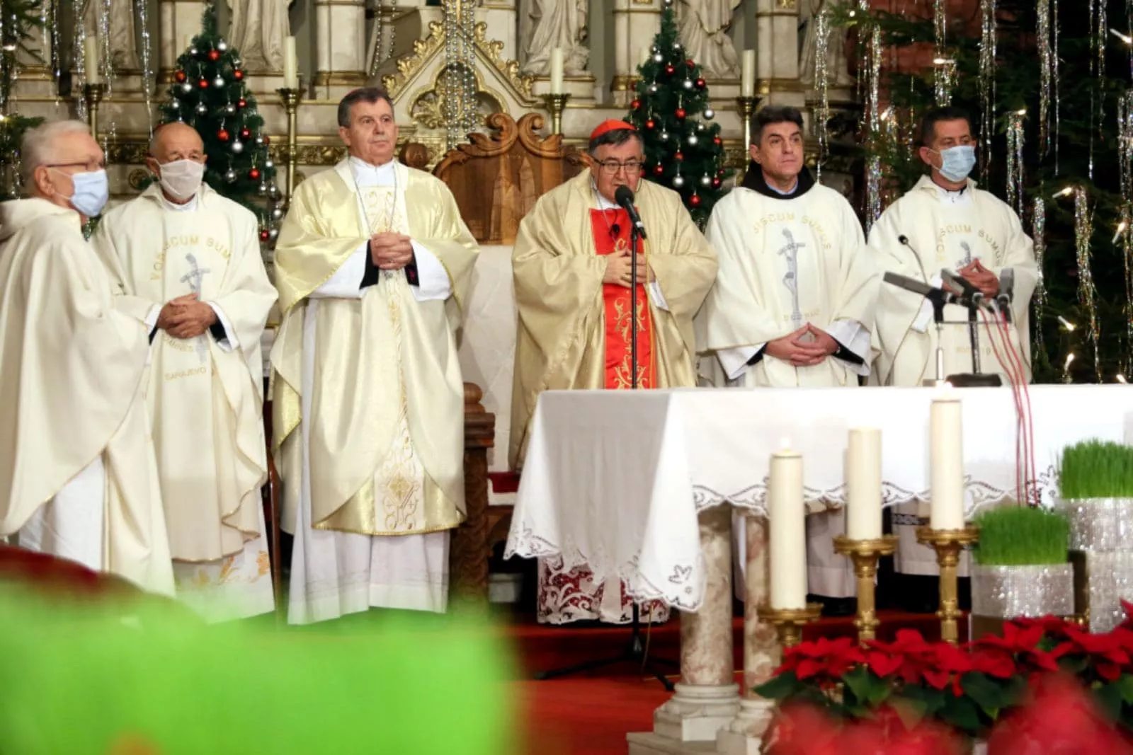 SARAJEVO, (Patria) - Nadbiskup metropolit vrhbosanski kardinal Vinko Puljić predslavio je Svetu misu povodom Božića u sarajevskoj katedrali Srca Isusova kojoj su prisustvovali vjernici.