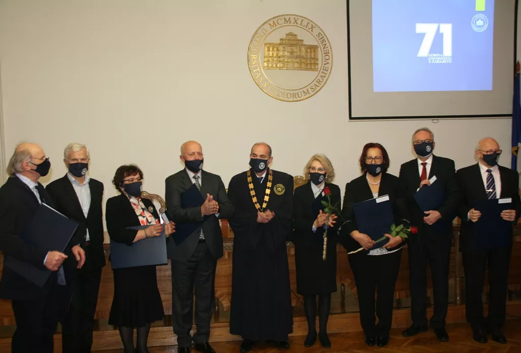 SARAJEVO, (Patria) - Promocija profesora emeritusa Univerziteta u Sarajevu, održana kao svečani dio 22. sjednice Senata Univerziteta i organizirana u okviru obilježavanja 71. godišnjice Univerziteta u Sarajevu, upriličena je 23. decembra 2020. godine u svečanoj sali Univerziteta u Sarajevu.