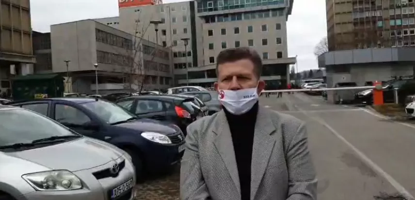 (Patria) - Predsjednik Saveza samostalnih sindikata BiH Selvedin Šatorović ispred BH Telecoma pružio je podršku radnicima, koji su se okupili pred Direkcijom.