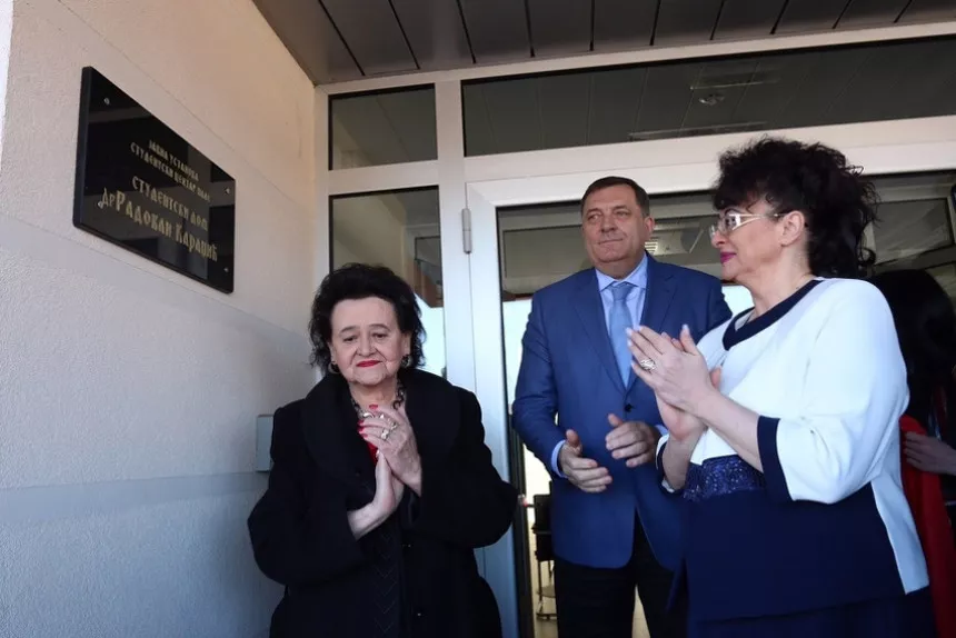 (Patria) - Sonja Jovićević Karadžić kazala je da tabla s imenom njenog oca Radovana Karadžića na Studentskom domu treba biti skinuta.