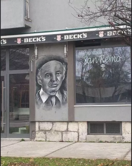 Mural je oslikan pored ugostiteeljskog objekta “San Remo” a tako se zvao i kafić u seriji “Lud, zbunjen, normalan”, u kojoj je Nadarević imao glavnu ulogu – Izeta Fazlinovića, prenosi LikeStory.