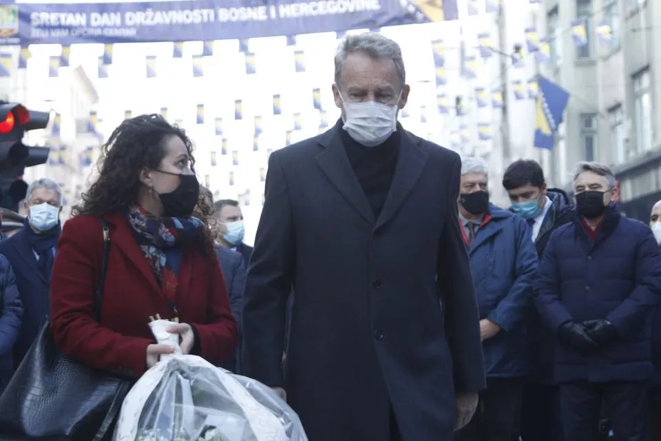 "Sinoć smo mogli čuti Čovića koji je kaže da se odriče trećeg entiteta i bilo kakvih insinuacija u vezi s tim. Dodik koji je bio vrlo agresivan i drzak te koji je pokušao u svom stilu da razgovara i sa svjetskim diplomatama na kraju je kazao da je spreman otići s visokim predstavnikom u BiH Valentinom Inzkom i skinuti ploču na kojoj je ime ratnog zločinca Radovana Karadžića na Palama", kazao je Izetbegović.