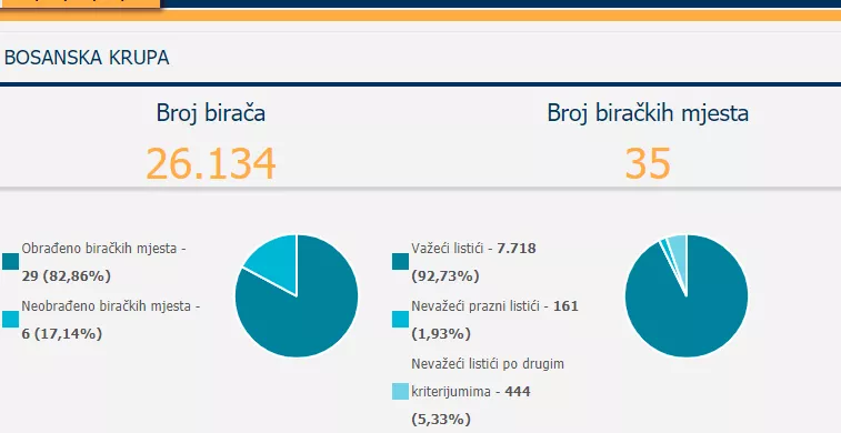 Alitović je nakon obrađenih 85, 71 posto biračkih mjesta osvojio 4.356 glasova. Drugi je kandidat SDA Mehmed Mahmić sa 3.481 glasom. Na trećem mjestu je kandidat Naše stranke Himzo Krupić.