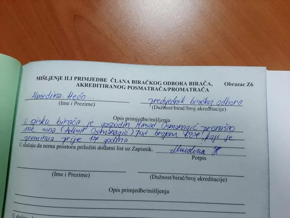U šoku zbog onoga što vidi Osmanagić je prijavio biračkom odboru koji je napravio zapisnik.